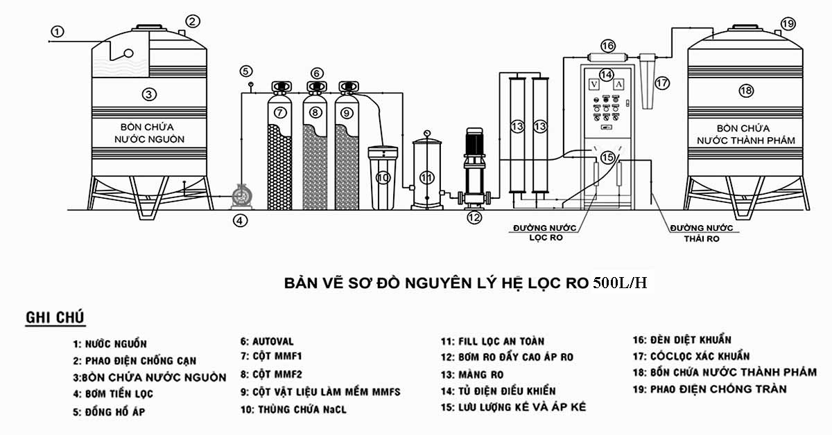 Sơ đồ nguyên lý máy lọc nước RO công nghiệp 1000l/h