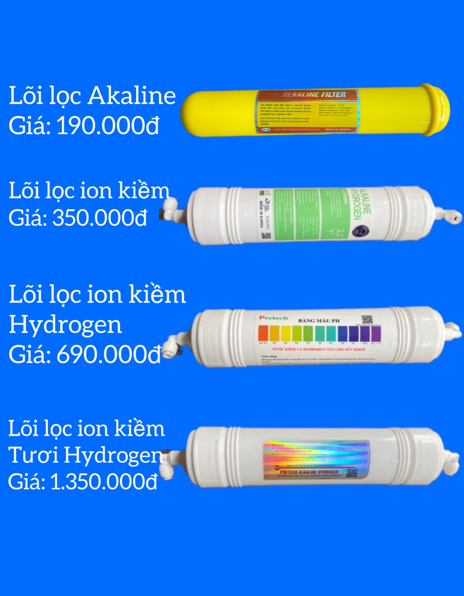 BÁO GIÁ LÕI LỌC TẠO ION-KIỀM-ALKALINE-HYDROGEN-Pretech