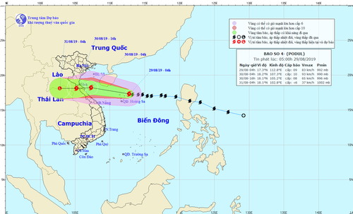 Theo trung tâm dự báo khí tượng thủy văn Quốc gia, thì vào hồi 4 giờ sáng ngày 29/08 thì bão số 4 tên quốc tế là Podul đang cách đất liền các tỉnh Quảng Trị - Quảng Ngãi khoảng 480 km. Ngoài ra cách đất liền các tỉnh nghệ An - Quảng Bình khoảng 680 km về phía đông.