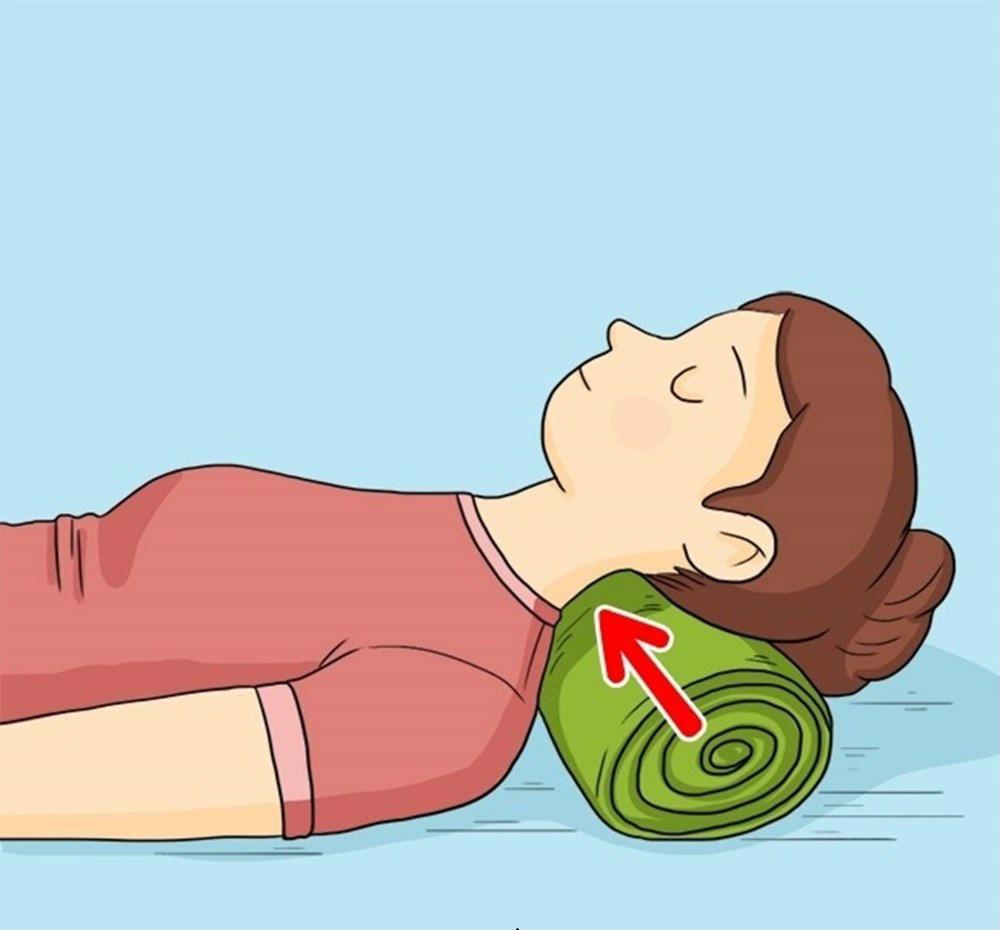 - Trong vài tuần đầu tiên bạn nên sử dụng một chiếc khăn gấp nhiều lớp để kê đầu. Lúc đầu, bạn xếp theo đúng chiều cao của chiếc gối đang dùng. Vài ngày sau, bạn hạ thấp dần, mỗi ngày giảm một chút cho đến khi không cần đến chúng nữa.