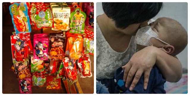 Các mẹ biết không, công an vừa bắt quả tang 1 cơ sở sản xuất bánh snack bẩn kinh khủng, phần lớn từ hóa chất trung quốc. Theo kết quả kiểm nghiệm số hóa chất được dùng để làm bim bim toàn là chất nhuôm màu nhân tạo Tartazine (ký hiệu E102).