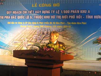 Ông Hoàng Quang Việt, Giám đốc Công ty CP xây dựng và phát triển đô thị Hòa Phát cho biết, Hòa Phát sẽ xây dựng khu đô thị đồng bộ về kết cấu hạ tầng kỹ thuật, hạ tầng xã hội và các công trình văn hóa, thể dục thể thao. Đặc biệt, hệ thống cây xanh với tỉ lệ lớn trong dự án này sẽ góp phần tạo ra khu đô thị xanh, vành đai phụ cận xanh như quy hoạch Vùng Thủ đô đã phê duyệt".