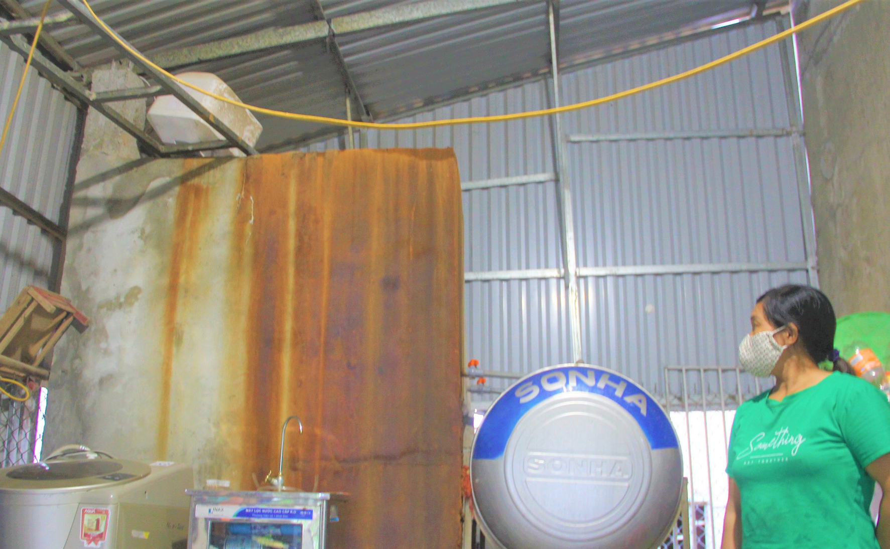 Phải lọc qua hệ thống nên nước sạch không đủ dùng, chảy nhỏ giọt như nấu rượu. Lọc xong vẫn chưa sử dụng được liền, tôi phải mua tấm vải lọc dài 1m với giá 70.000 đồng/tấm. Mỗi tấm vải lọc chỉ dùng được 2 tháng. Đó chỉ là giải pháp tạm thời, vừa tốn tiền mà vẫn không an toàn cho sức khỏe".