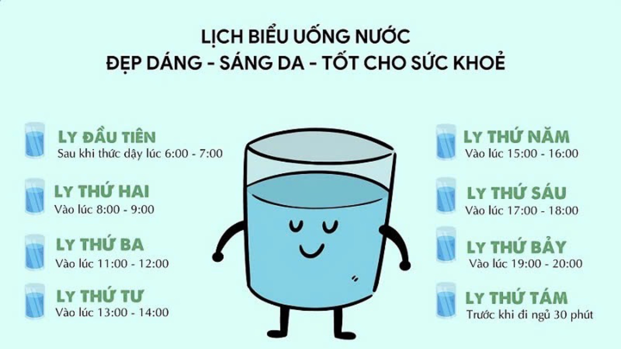 Lưu ý: Không nên uống quá nhiều nước trong thời gian ngắn vì có thể gây mất cân bằng điện giải.