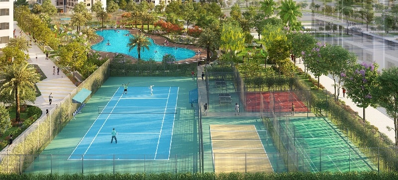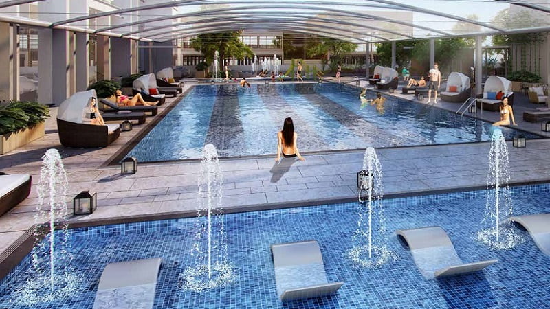 - Khu công viên, phố đi dạo, bể bơi