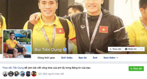 Facebook của thủ thành Bùi Tiến Dũng hiện có gần 900 nghìn người theo dõi.
