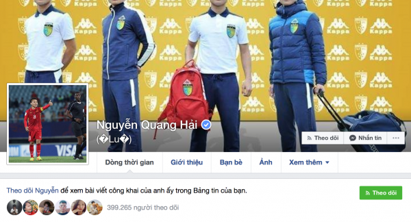 Facebook của Quang Hải cũng đã có dấu tích xanh.
