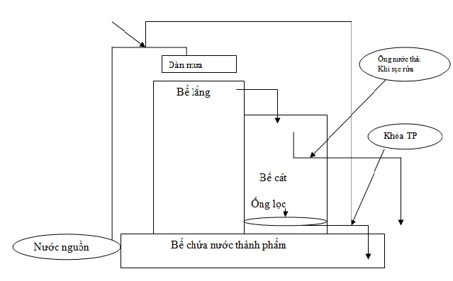 Bể lọc: với vật liệu lọc là cát, sỏi, than hoạt tính: Có tác dụng loại bỏ tạp chất, cặn có kích thước nhỏ hơn mà bể lắng chưa lắng được, loại bỏ vi khuẩn, màu, mùi và 1 số chất có hại khác.